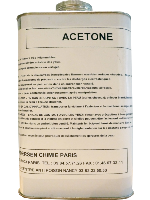 Acétone à 99% Unité de vente: 1L, 5L (20L ou plus sur demande) Disponible : en magasin ref : 13115 Catégories : Essences et Solvants, Solvants Produits similaires Essence A à 99,99% Lire la suite Perchloréthylène 99% Lire la suite Essence C à 100% Lire la suite Solvant Araldite Lire la suite